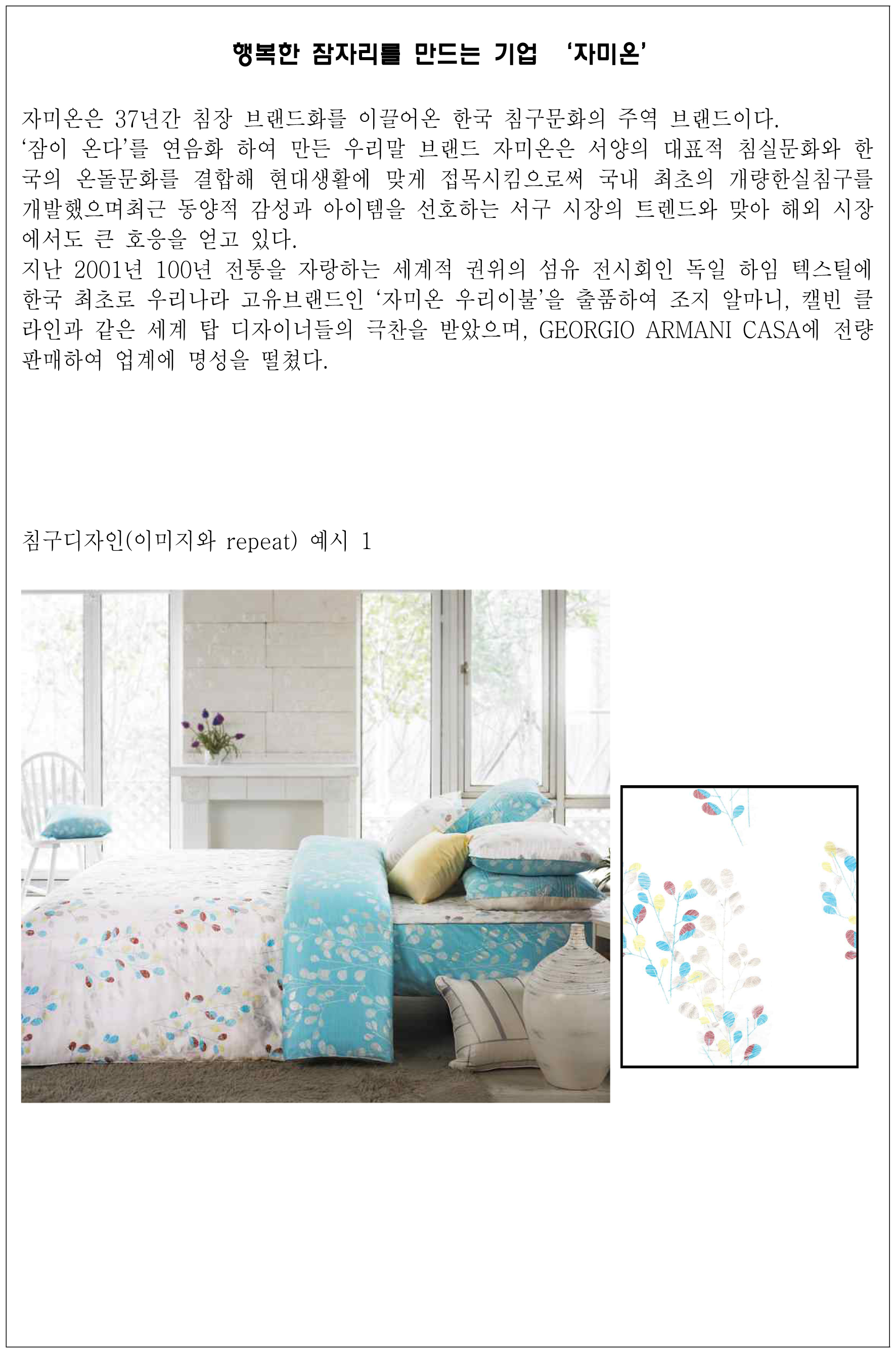 ▸내 용: 침구 브랜드 자미온의 패션・텍스타일 디자인