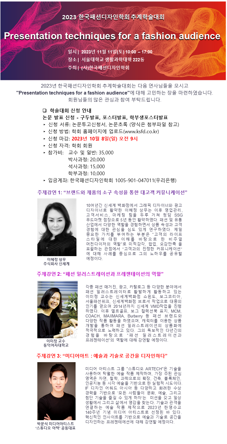 2023 한국패션디자인학회 추계학술대회 신청 마감 연장 공지