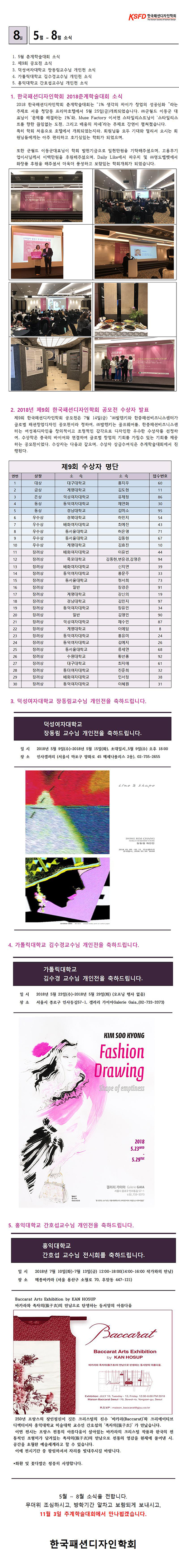 1. 한국패션디자인학회 춘계학술대회 이모저모 2. 제9회 한국패션디자인학회 공모전 안내 3. 덕성여자대학교 장동림교수님 개인전 개최소식 4. 가톨릭대학교 김수경교수님 개인전 개최소식 5
