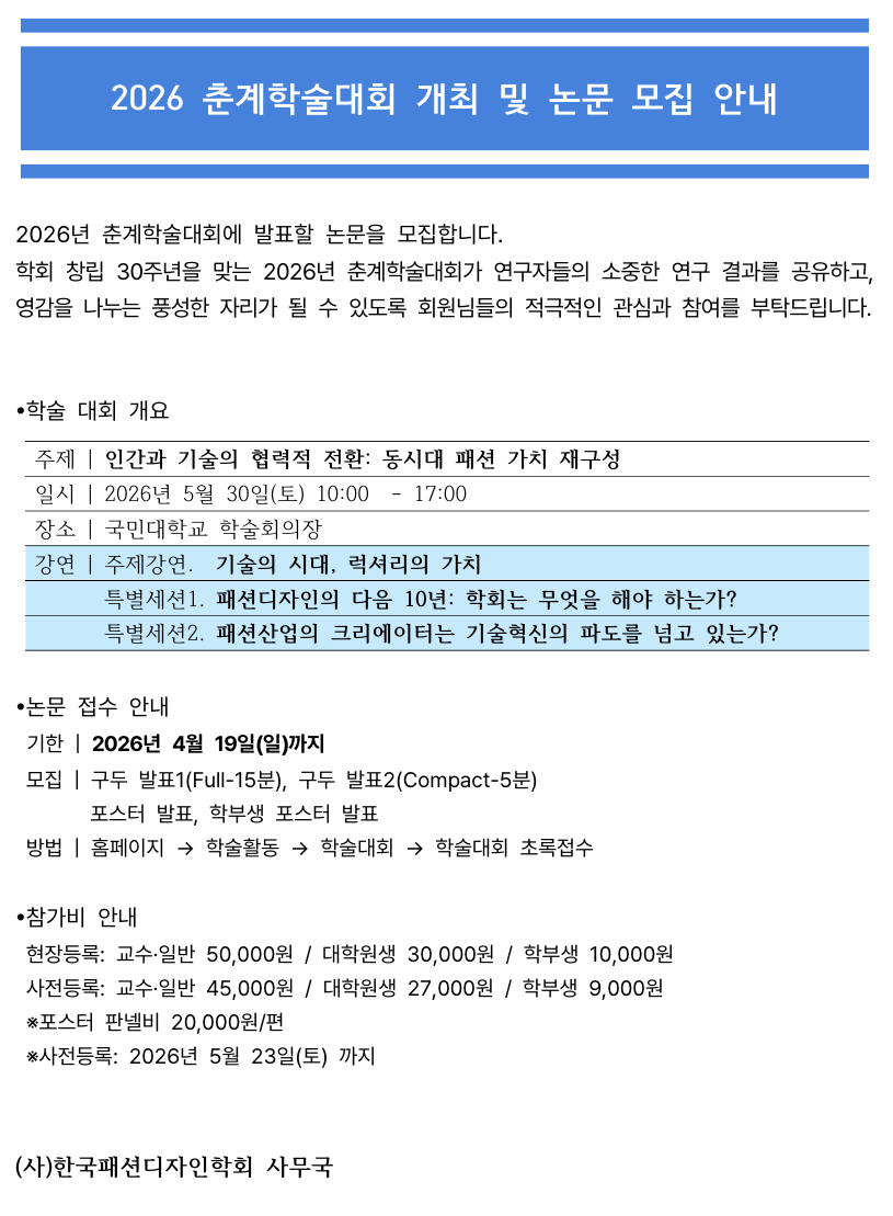 2026 춘계학술대회 개최 및 논문 모집 안내