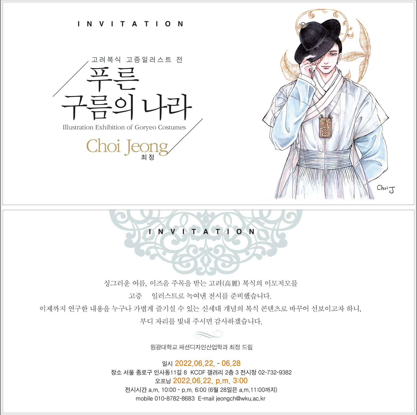 원광대학교 패션디자인산업학과 최정 교수님의 고려복식 고증 일러스트 전시 [푸른 구름의 나라] 전시에
